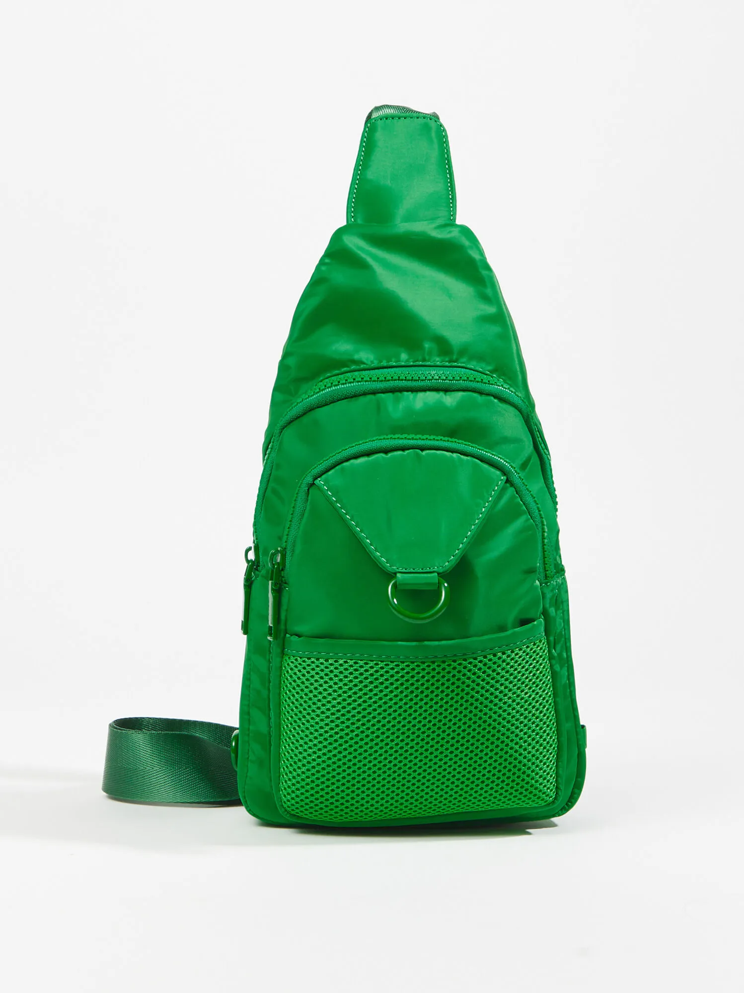Add a statement piece to your athleisure look with this fun sling bag featuring a mesh front pocket a stacked zipper pockets. Wear over one shoulder or as a crossbody to take all of your essentials on-the-go while enhancing the style of your fit!
