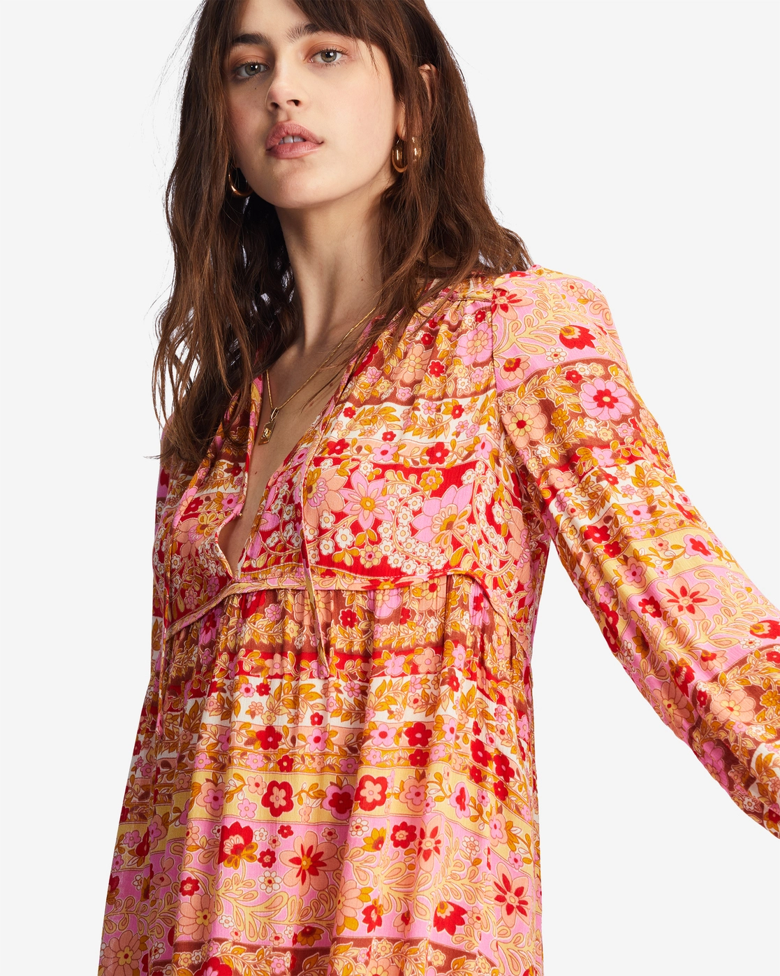 Featuring a seasonal print on airy soft viscose, the Heart’s Desire dress from our Rising Wild collection combines a flowy fit with a deep V-neck and long blouson sleeves. What can we say? The heart always knows what she wants.