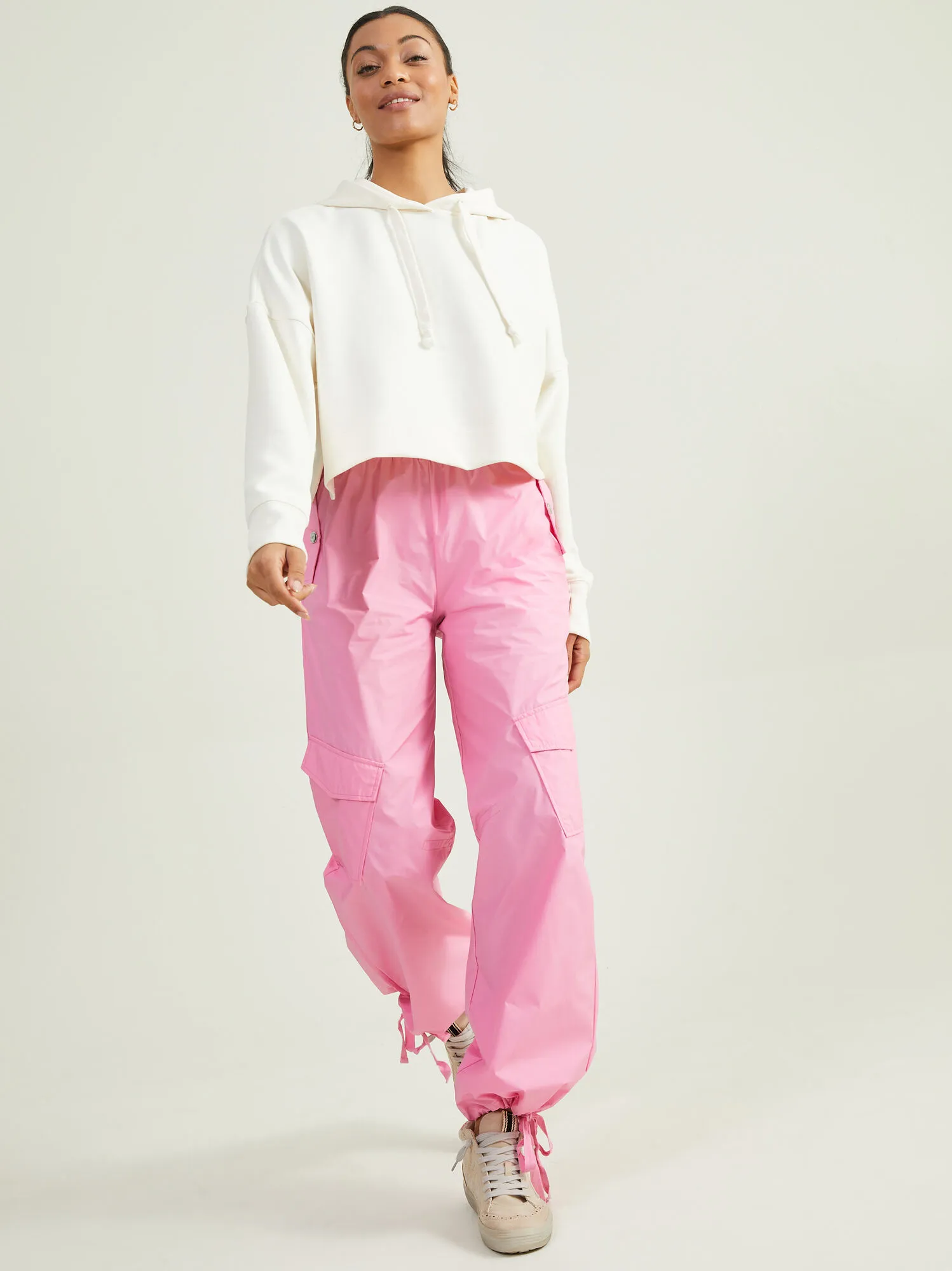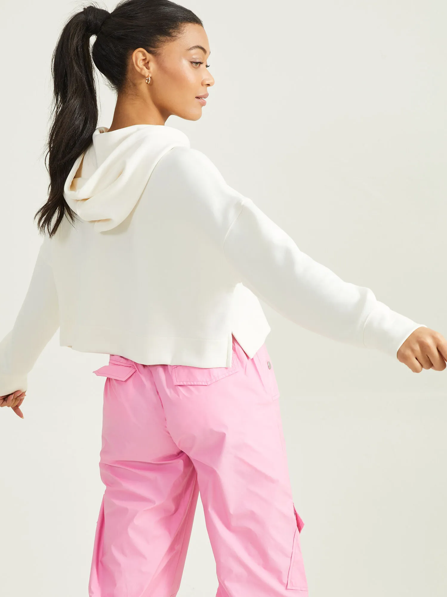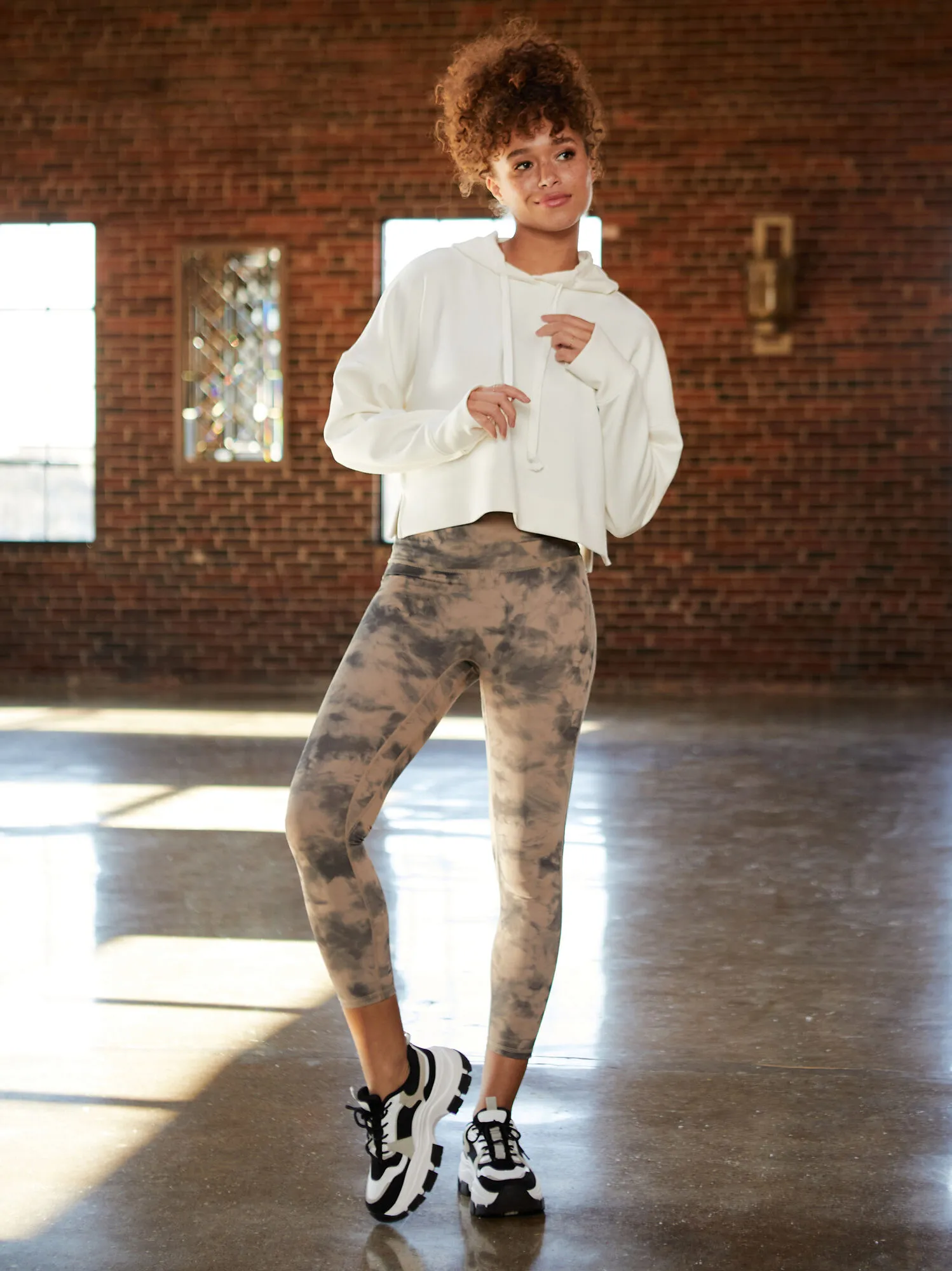 The hoodie that does not go wrong featuring a fringed drawstring, and classic boxy style. The thumb holes at the cuff give a little extra warmth on your chilly walk or drive to the gym.