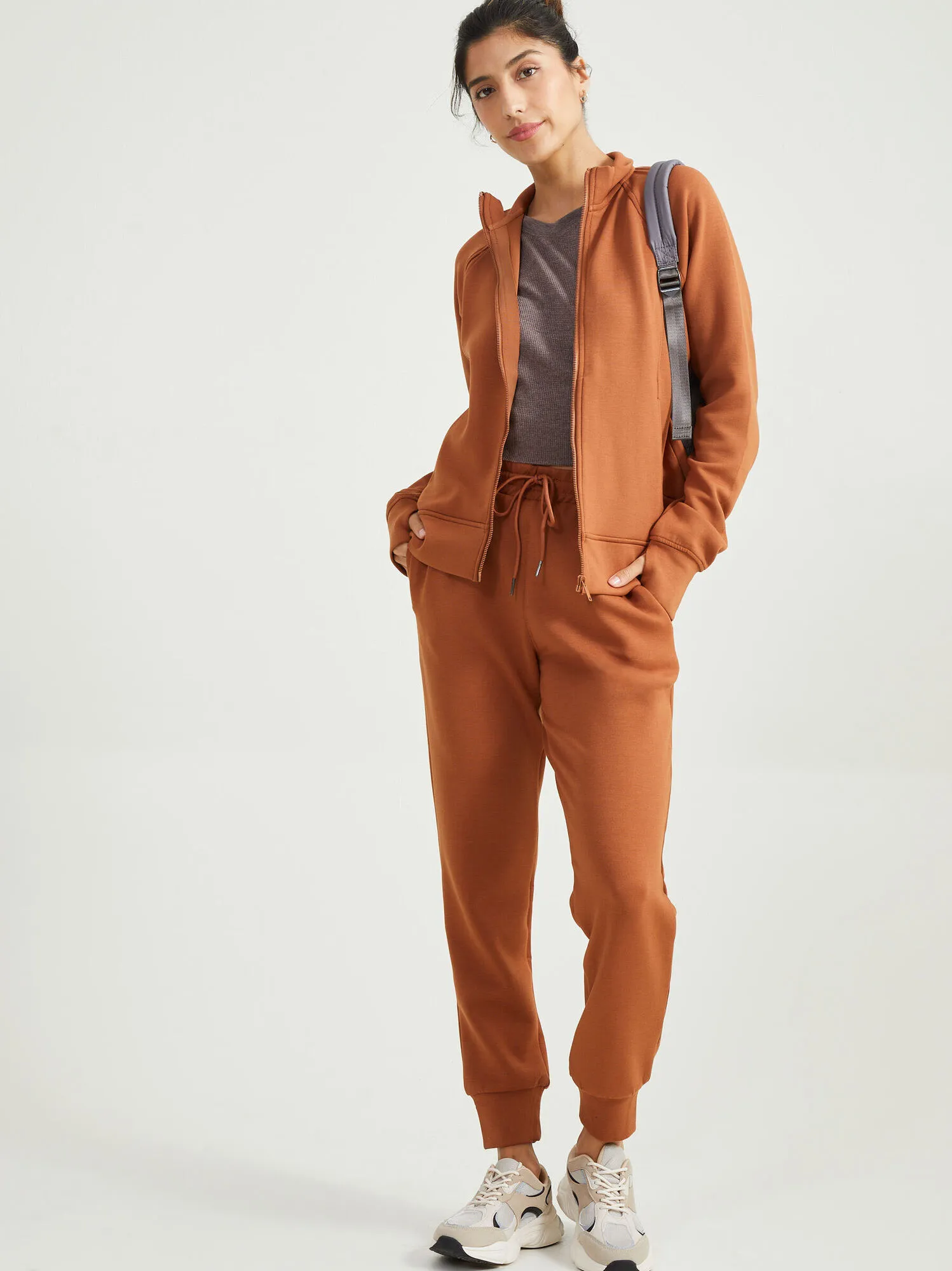 On the road or taking a hike these joggers are the perfect addition to your athleisure basics with the thick ankle cuff and stretchy, elastic waist. The interior lining is extra silky soft to feel good against the skin. Grab the matching jacket for a complete look!