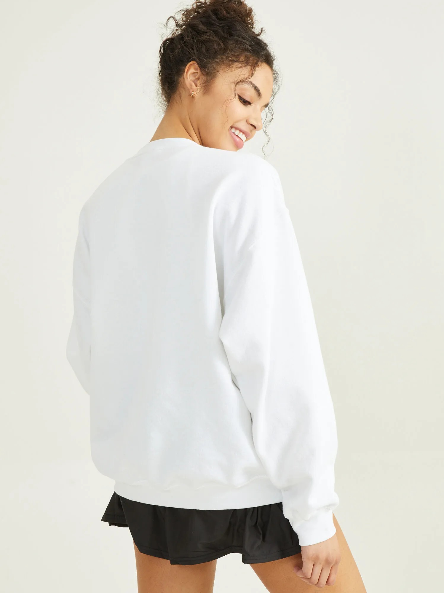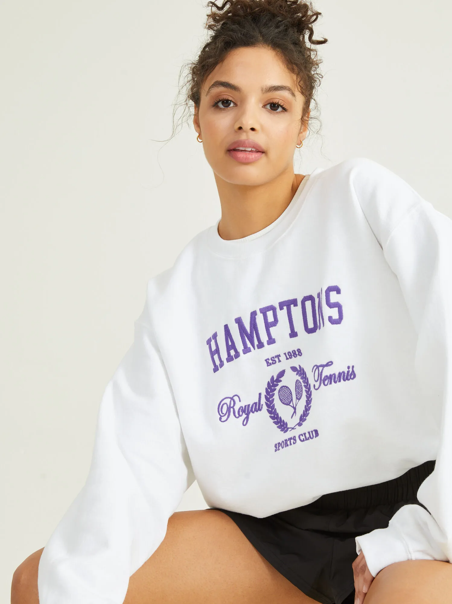 Manifest that prep tennis girl look with this sports club embroidered sweatshirt featuring an ultra soft fleece interior and classic crewneck. Pair with a tennis skirt and high jersey socks with sneakers for the full court look!