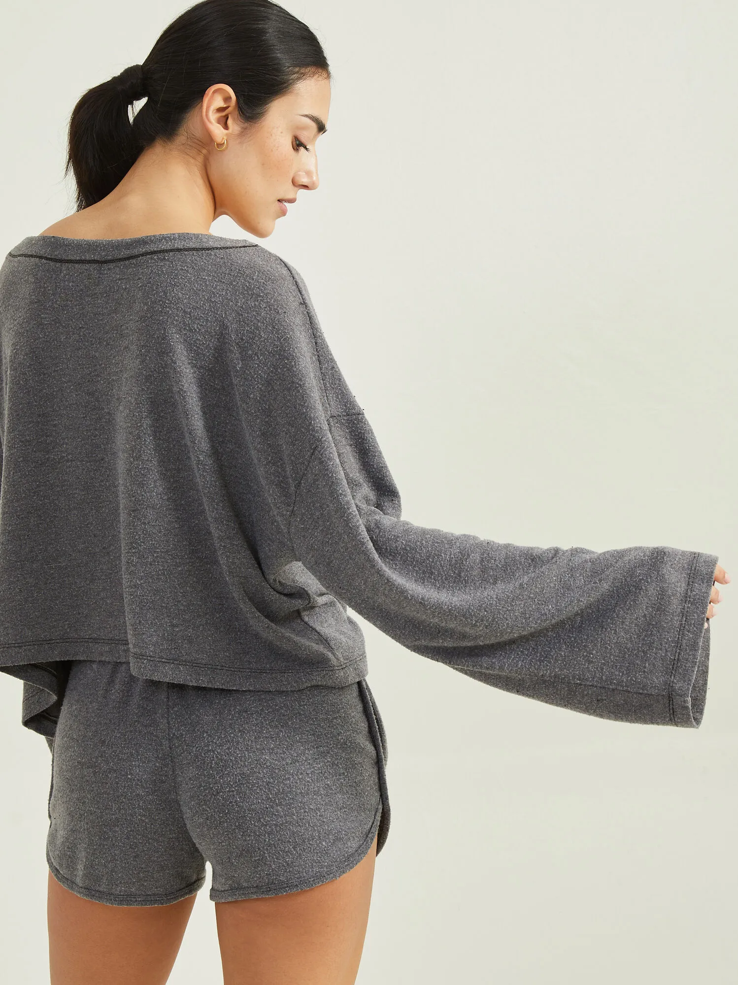 The top that takes you from a busy day to a peaceful night in one quick change. The super cozy fleece material, loose slouchy fit, and matching Wind Down Shorts will make this the perfect set to slip into for a comfy evening.